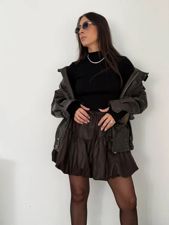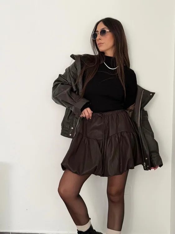הפריט הכי נכון לעונה- חצאית בלון מדמוי עור