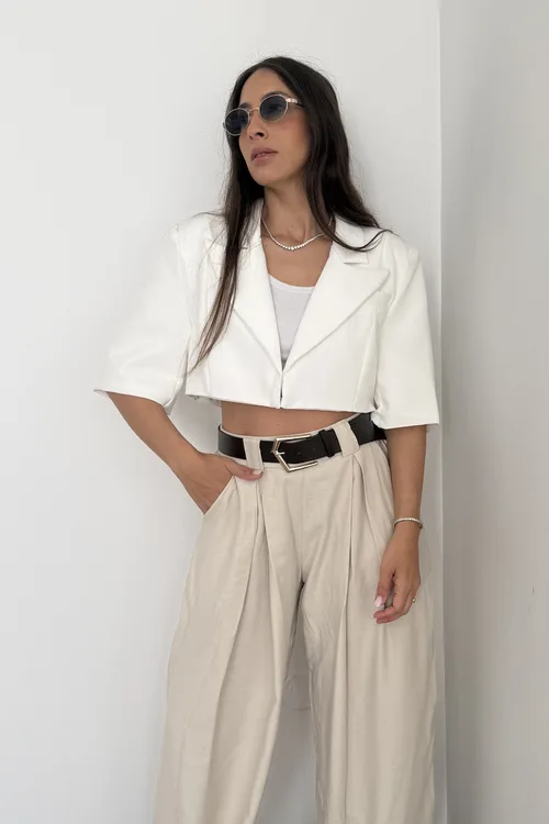 ג'קט מחויט קצר בגזרה מדויקת שמוסיף טאץ אלגנטי לכל לוק.