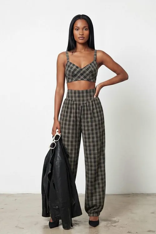 סט משבצות אופנתי שמעניק לוק מתוחכם, נשי ומדויק.