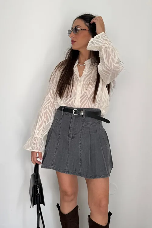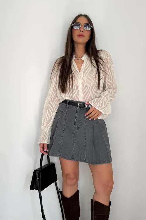 מכופתרת שיפון תחרה